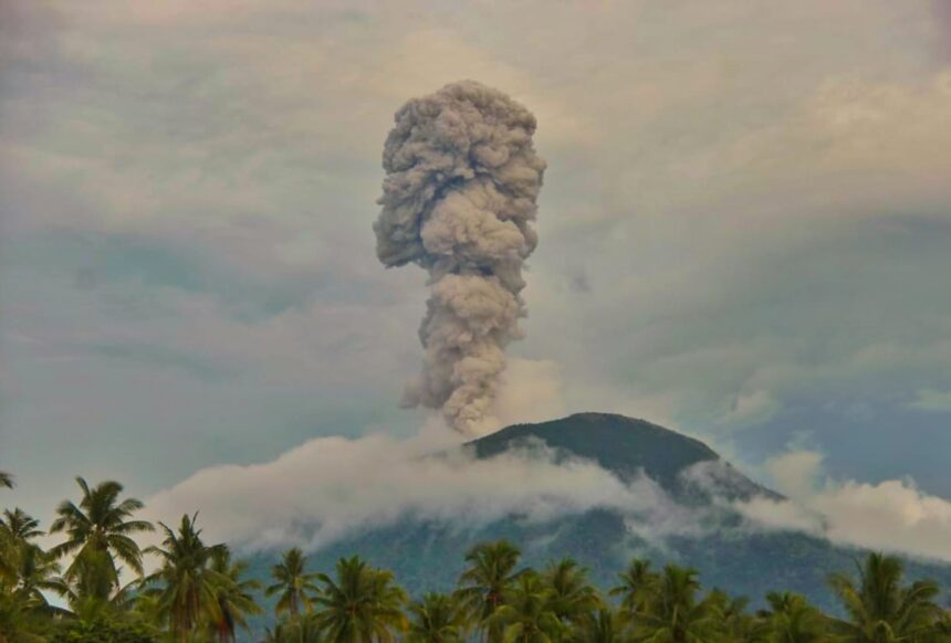 saksimata.id/ – Pusat Vulkanologi dan Mitigasi Bencana Geologi (PVMBG), Erupsi Gunung Ibu di Maluku Utara, menciptakan kolom abu dengan tinggi sekitar 800 meter. Pada pukul 10.44 WIT, abu vulkanik berwarna kelabu dengan intensitas tebal mengarah ke utara, menurut Ahmad Basuki, petugas Pos Pengamatan Gunung Ibu.