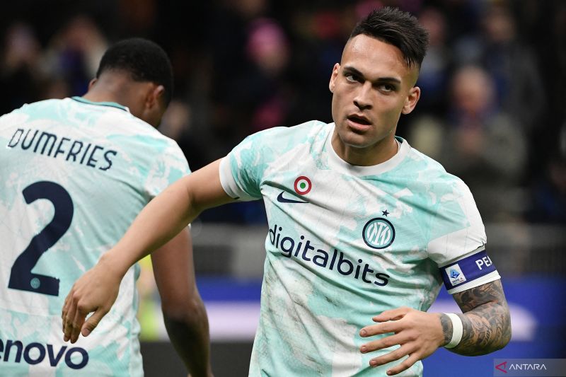 Lautaro Martinez mencatatkan namanya di papan skor setelah menendang bola hasil umpan silang Denzel Dumfries. Lecce tertinggal 0-2.